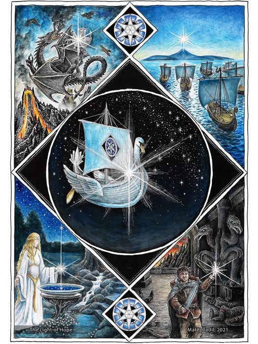 Loved this so so much!! The invoking of cold is fascinating to me; life needs warmth to remain alive. That's part of what's so chilling about the Barrow-wights, I think, the deep and resonant cold so starkly contrasting life. Light, warmth, hope, beauty (which light can illuminate)...all beautifully connected, and very intrinsic to us as beings. And the thread of Eärendil's light, originally from the Two Trees...so lovely. I love that Matej Cadil piece!! Thanks again!!